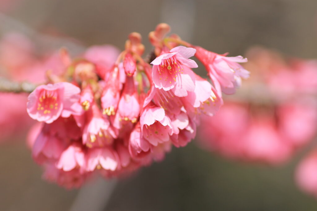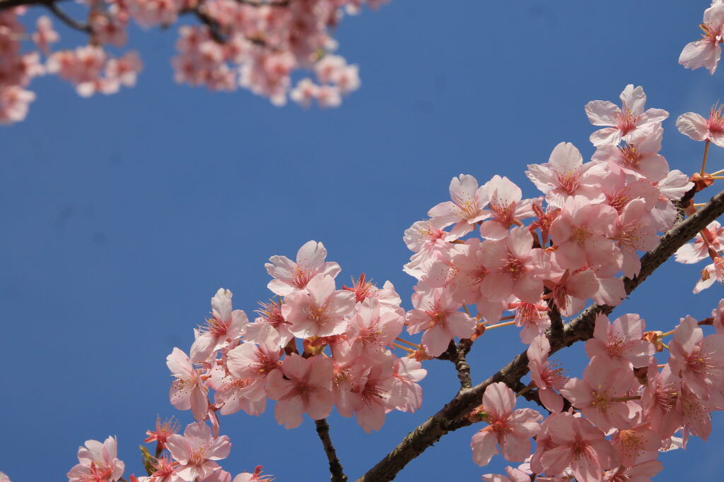 寒緋桜は河津桜の片親にあたる品種らしく(寒緋桜と大島桜を交配した品種が河津桜なんだとか)、河津桜は寒緋桜のピンクを受け継いだんだなあと感動しました。