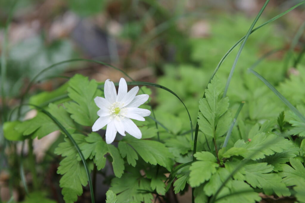 キクザキイチゲはニリンソウと同じキンポウゲ科イチリンソウ属に含まれる種なのだそう。