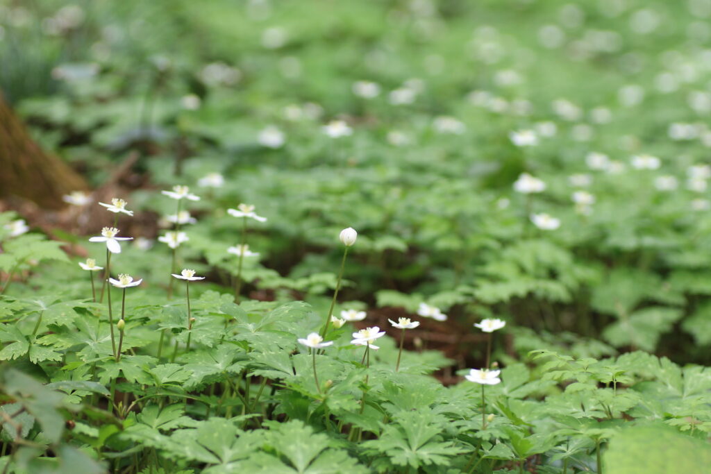 少し車で移動したところにあるニリンソウの群生地も満開できれいでした。
