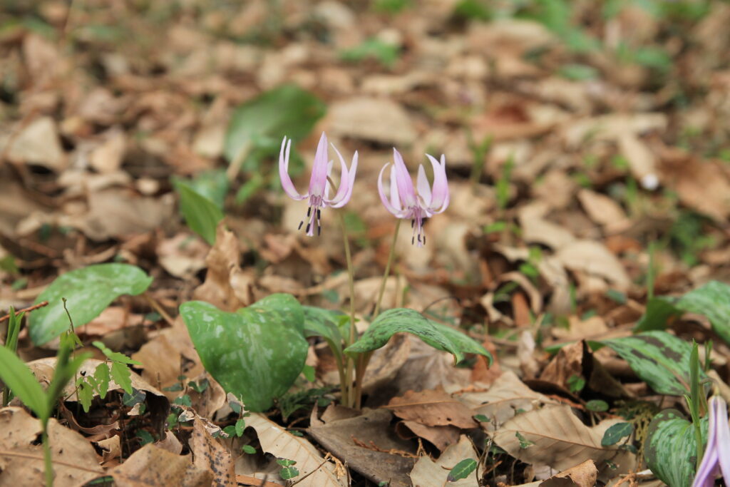 カタクリは葉っぱも独特な模様ですね。